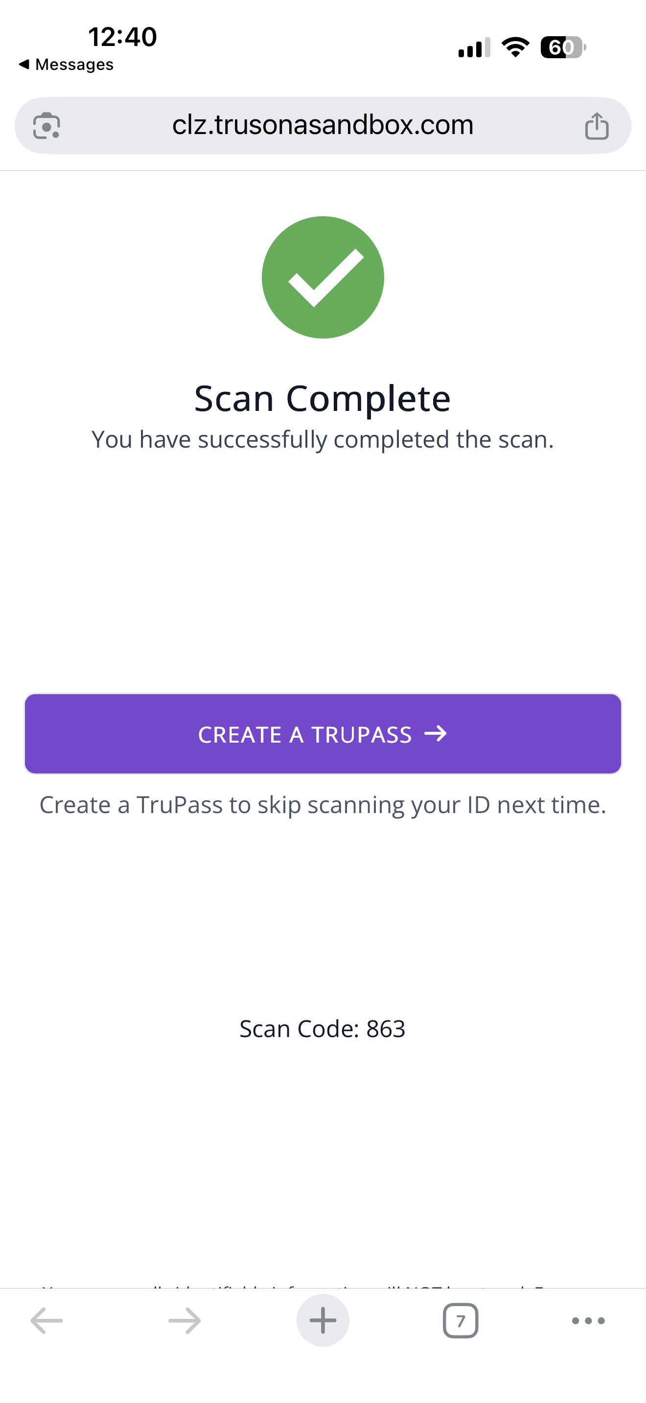 2. At the end of the scan completion step, you will see an option to create a TruPass if all of the requirements have been met.